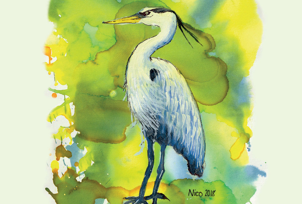 Besides having a pretty sweet portfolio piece, by winning the contest Nico also wins a pizza party for himself and five of his friends and/or family members and an enlarged image of the cover featuring his “Lowcountry Heron.”