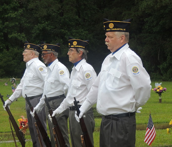Memorial Day was observed by many across the country in various ways. But it’s hard to imagine a more poignant ceremony than the one held at Live Oak Park on Ashley River Road on Monday, May 28. The rain subsided long enough for the ceremony to take place, as many trudged through the soggy ground, past hundreds of graves adorned with American flags, many just inches above the standing water from the previous night’s deluge which still covered the ground and many of the grave markers.
